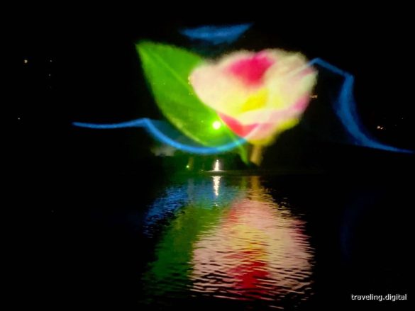 Am Südeingang des Christmas Garden Karlsruhe treiben Blumen aus Licht wie Seerosen über das Wasser. An der Seebühne überrascht ein blumiges Wassermärchen mit wunderschönen Blüten die sich über dem See entfalten, indem sie auf die feine Wasserwand einer Fontäne projiziert werden. Unterwegs locken ein Kuss unter dem Mistelzweig, eine Waffel unter dem Glühwürmchen-Baum und ein Foto zwischen Lichterketten. Mit dem Lichterfest in Karlsruhe ist der Geist der Weihnacht eingekehrt und bringt nicht nur Kinderaugen zum Leuchten. Über 30 kunstvolle Lichtinstallationen laden dazu ein, innezuhalten, zu staunen und den Zauber dieser besonderen Zeit tief in sich aufzunehmen.